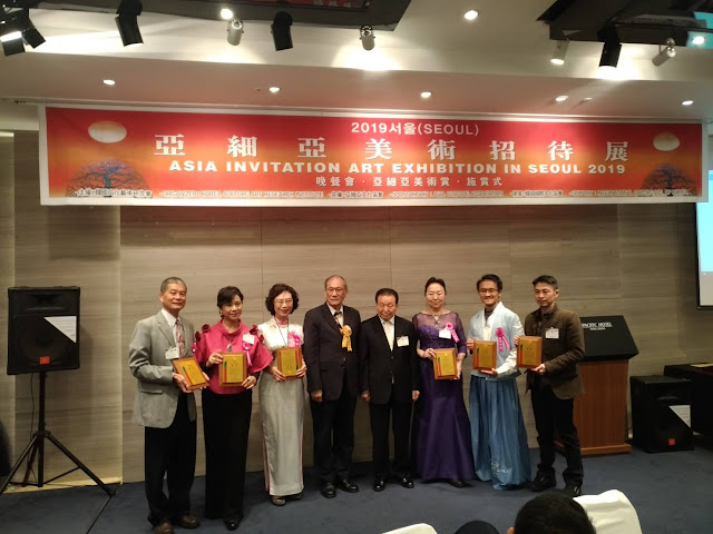 圖為:蔡俊章博士(右三)、 蔡俊章 博士之夫人(右四)、 中國翰林書畫院台灣院長 蔡豐名 博士(右二)、前世界論壇報社長 兼 台灣新生報 副總經理 邱兆億 、翰林書畫院院 副院長 蔡淑珠 藝術家(左)。